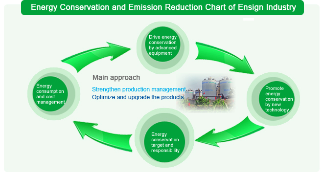 Energy-saving technological transformation projects also brought about emission reduction. By strategies of reusing three wastes, environmental governance and comprehensive utilization of resources, Ensign reduced three-waste discharge and realized trash to treasure and cyclic development. In 2014, Ensign was awarded Energy Conservation and Environment Protection Model Enterprise by China Biotech Fermentation Industry Association.